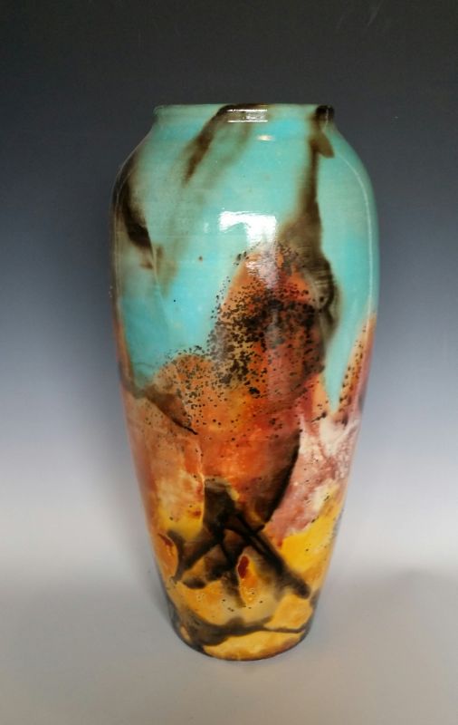 Peter Roussel started working with clay in the mid-1960s studying very traditional pottery methods and stoneware glazing techniques. The artist believes that an important contribution to his education was working in a program with children from ages 4 to 14 who were wards of the State of California. Although Roussel finds it difficult to put into words what came from this experience, he will be forever inspired by the children’s creative and expressive use of clay. From that experience, the artist began his journey in the exploration of alternative firing techniques (raku, pit, sagger, smoke firing) which he now uses exclusively.